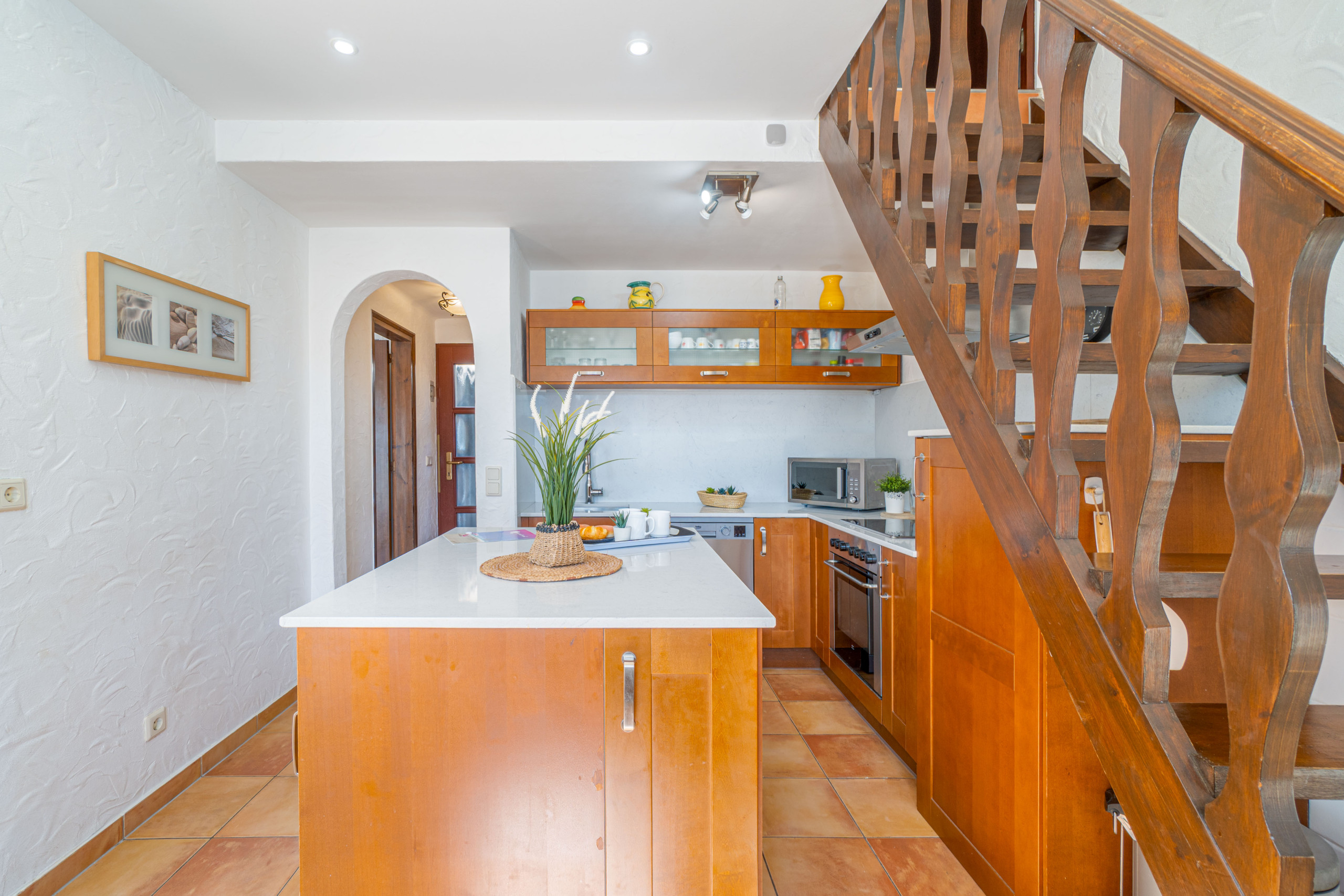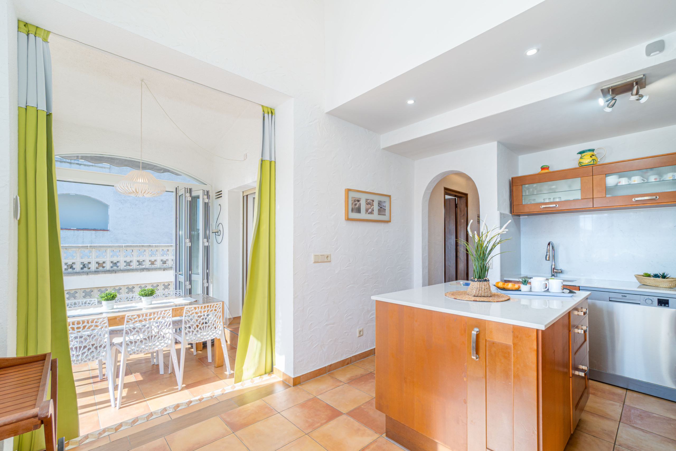 La cocina americana, de vitrocerámica, está equipada con nevera, microondas, horno, congelador, lavadora, lavavajillas, vajilla/cubertería, utensilios de cocina, cafetera, tostadora y hervidor de agua, ofreciendo todo lo necesario para una experiencia práctica y relajada.