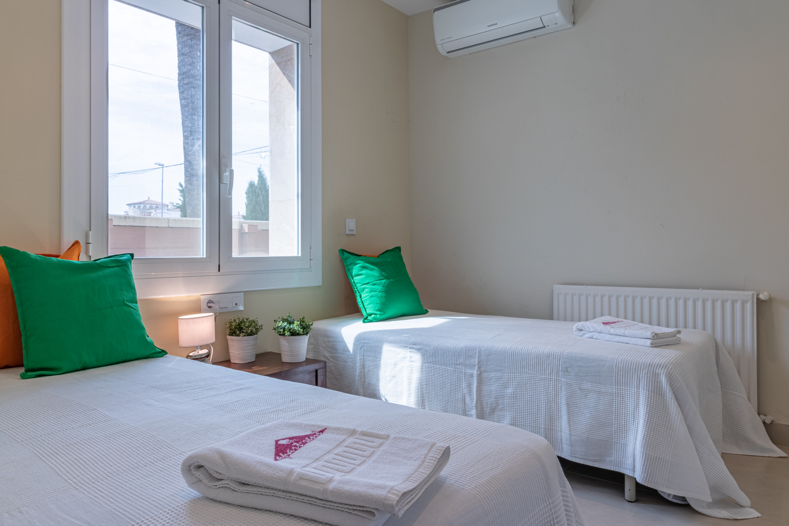 Es troba a 650 m del supermercat, a 850 m de la platja de sorra, a 16 km del camp de golf «Peralada», a 20 km de l’estació de tren AVE/TGV de Figueres i a 65 km de l’aeroport de Girona. Està ubicada en una zona tranquil·la, dins d’una urbanització ideal per a famílies.