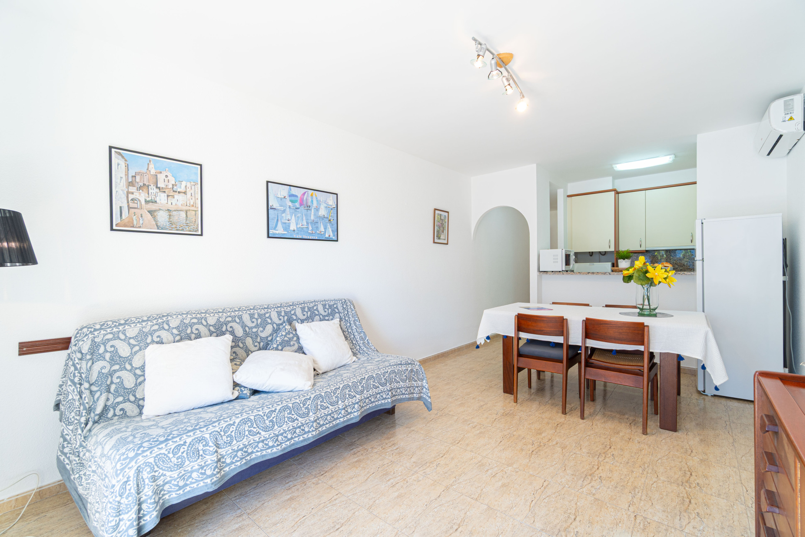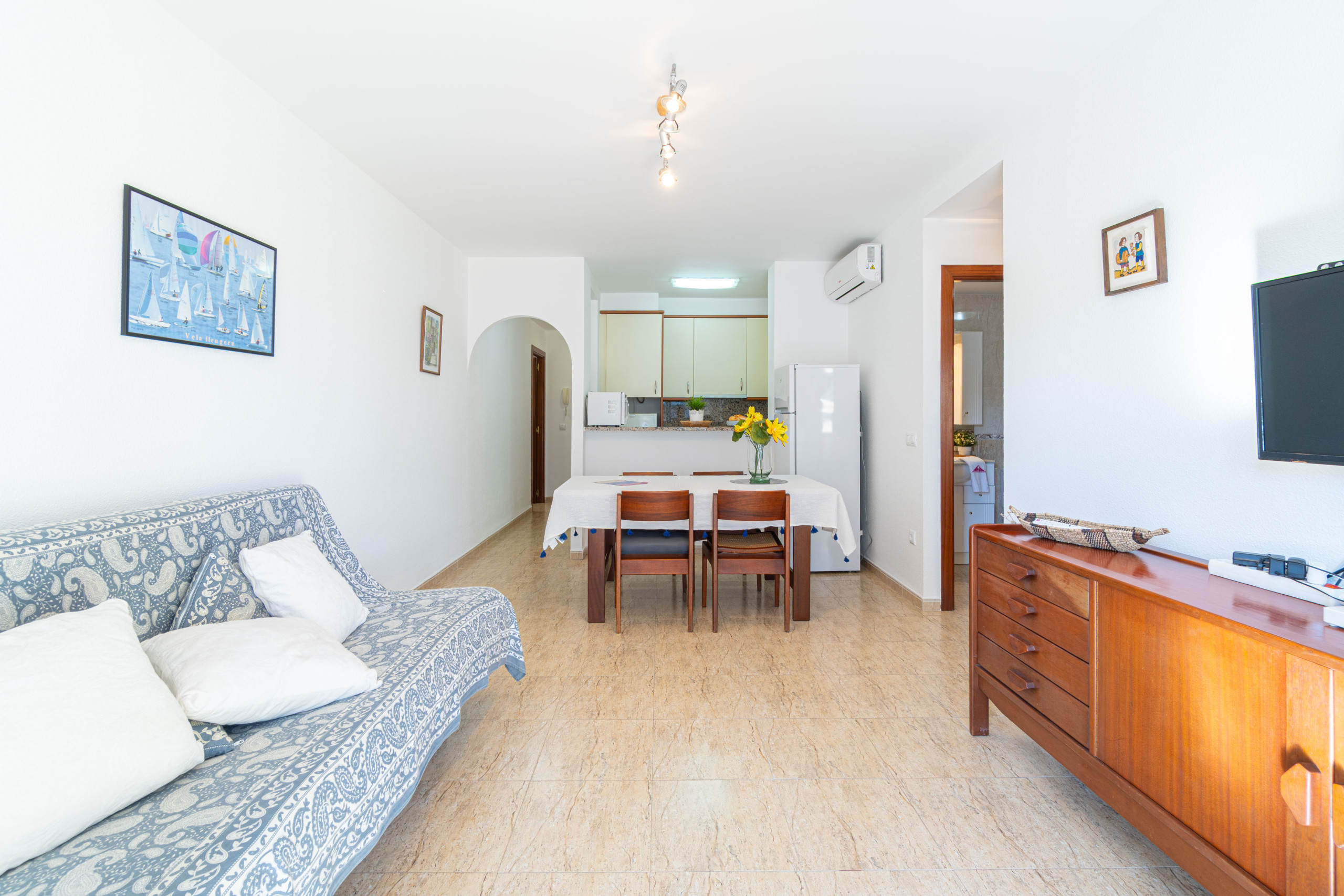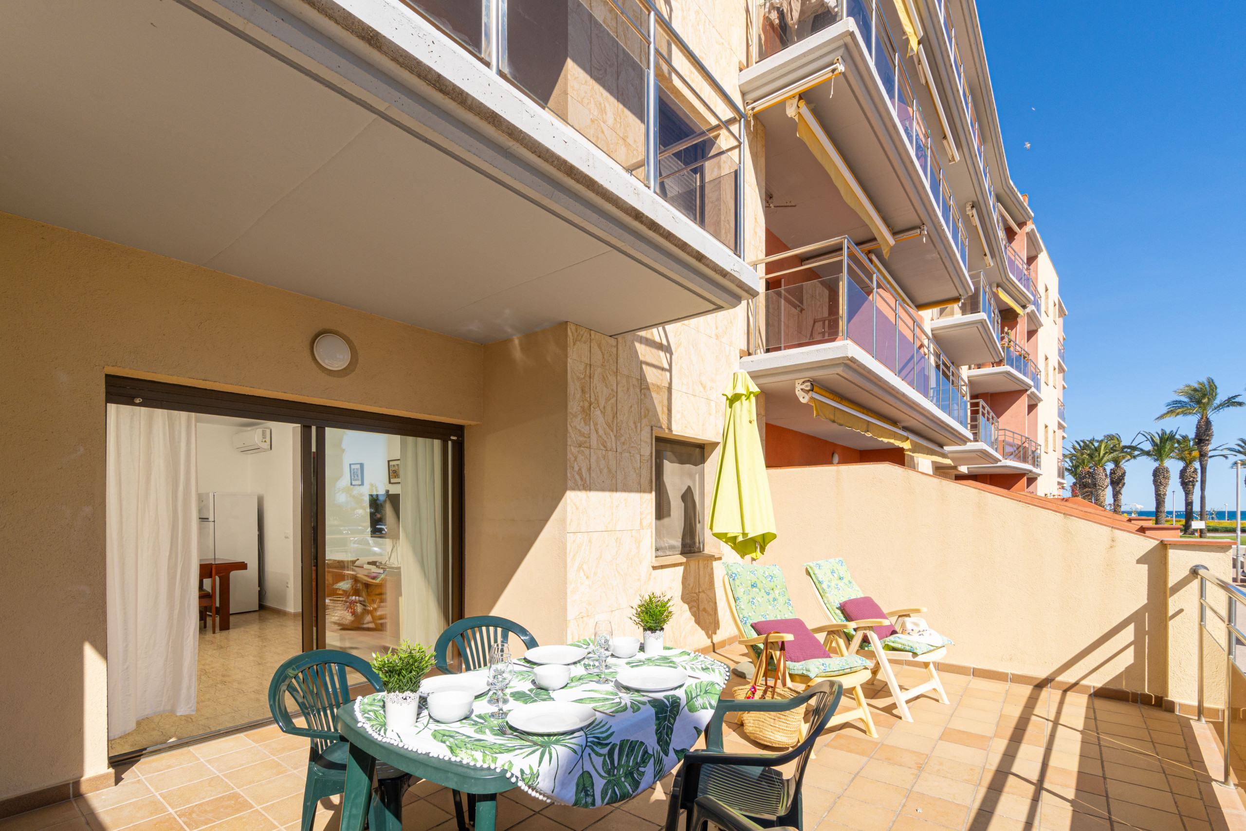 Das Apartment in Empuriabrava verfügt über 2 Schlafzimmer (eines davon als Kabine) und bietet Platz für 5 Personen. Die 50 m² große, komfortable und helle Unterkunft liegt in erster Strandlinie und eignet sich ideal für einen Familienurlaub an der Costa Brava.