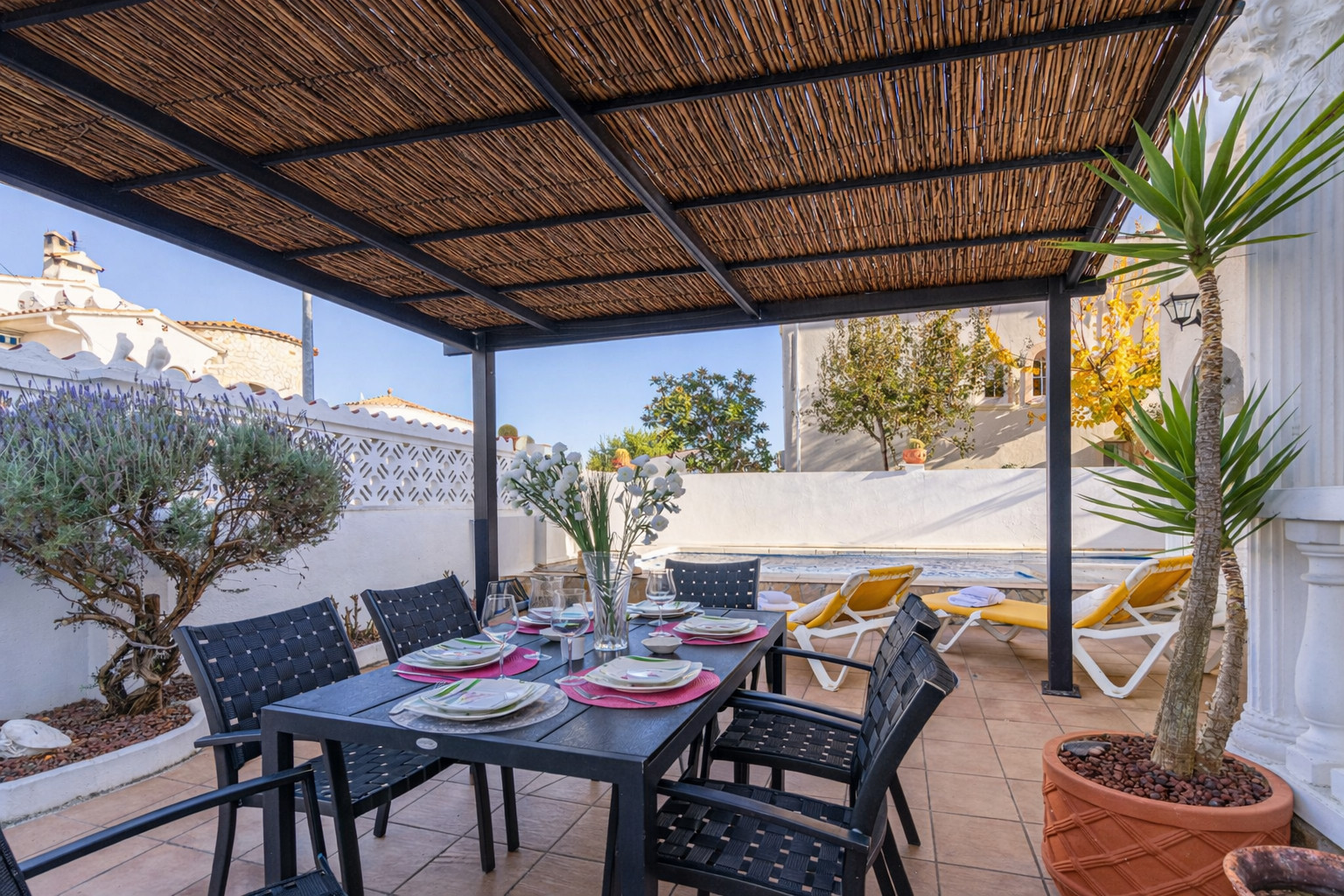 Die Villa befindet sich in einer ruhigen Wohngegend, innerhalb einer familienfreundlichen Urbanisation, in der Nähe der wichtigsten Einrichtungen: nur 400 m zum Supermarkt, 1,65 km zum Sandstrand von Empuriabrava, 4 km zur Stadt Castelló d’Empúries, 10 km zum Freizeitpark, 16 km zum Golfplatz Perelada, 20 km zum AVE/TGV-Bahnhof Figueres, und 65 km zum Flughafen Girona.