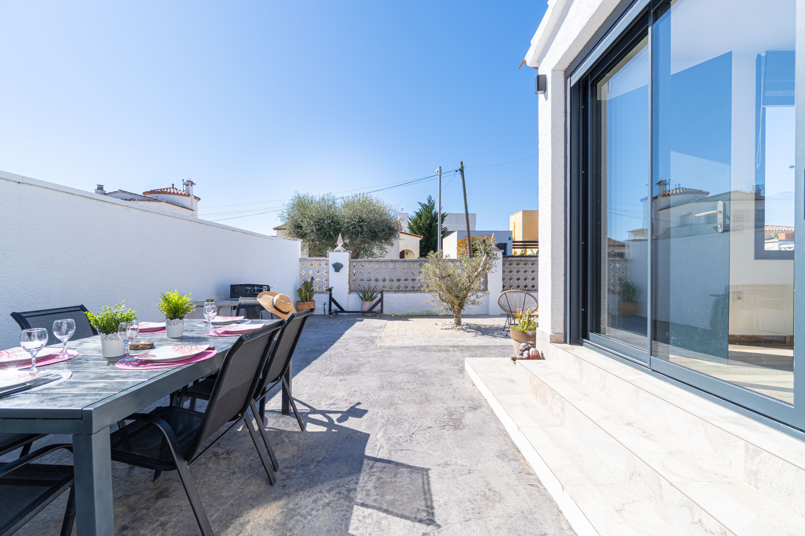 Die Villa am Kanal in Empuriabrava mit privatem Liegeplatz verfügt über 3 Schlafzimmer und bietet Platz für 8 Personen. Mit 75 m² ist sie eine komfortable und helle Unterkunft – ideal für einen Familienurlaub an der Costa Brava.