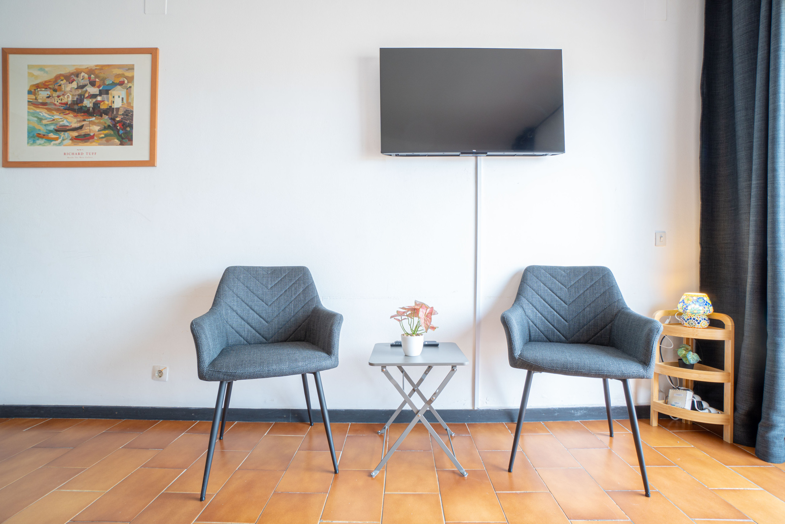 The accommodation offers a lift, outdoor furniture, terrace, washing machine, iron, internet access (wifi), heating via heat pump, air conditioning only in the living room, satellite TV (languages: Spanish, German and French).