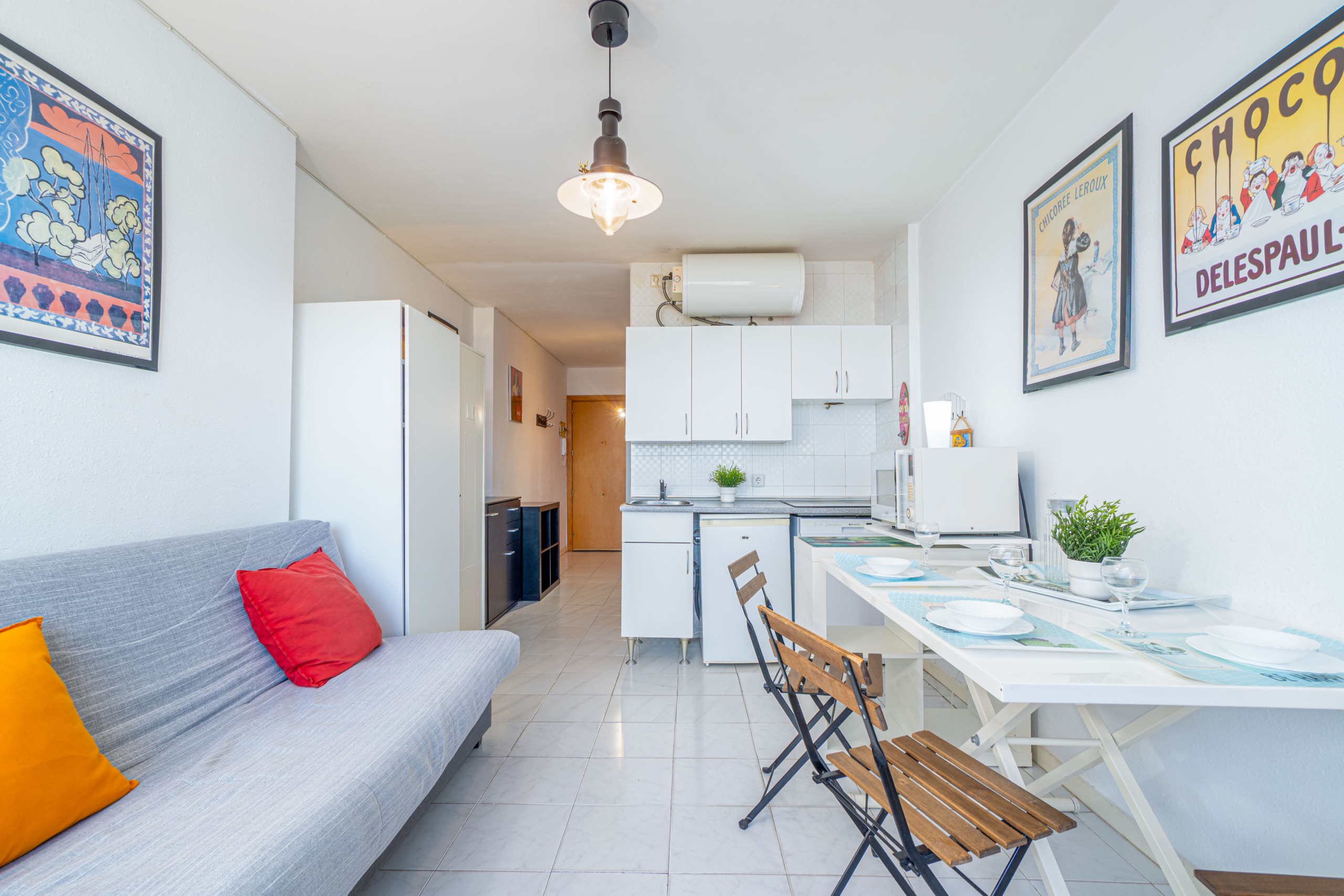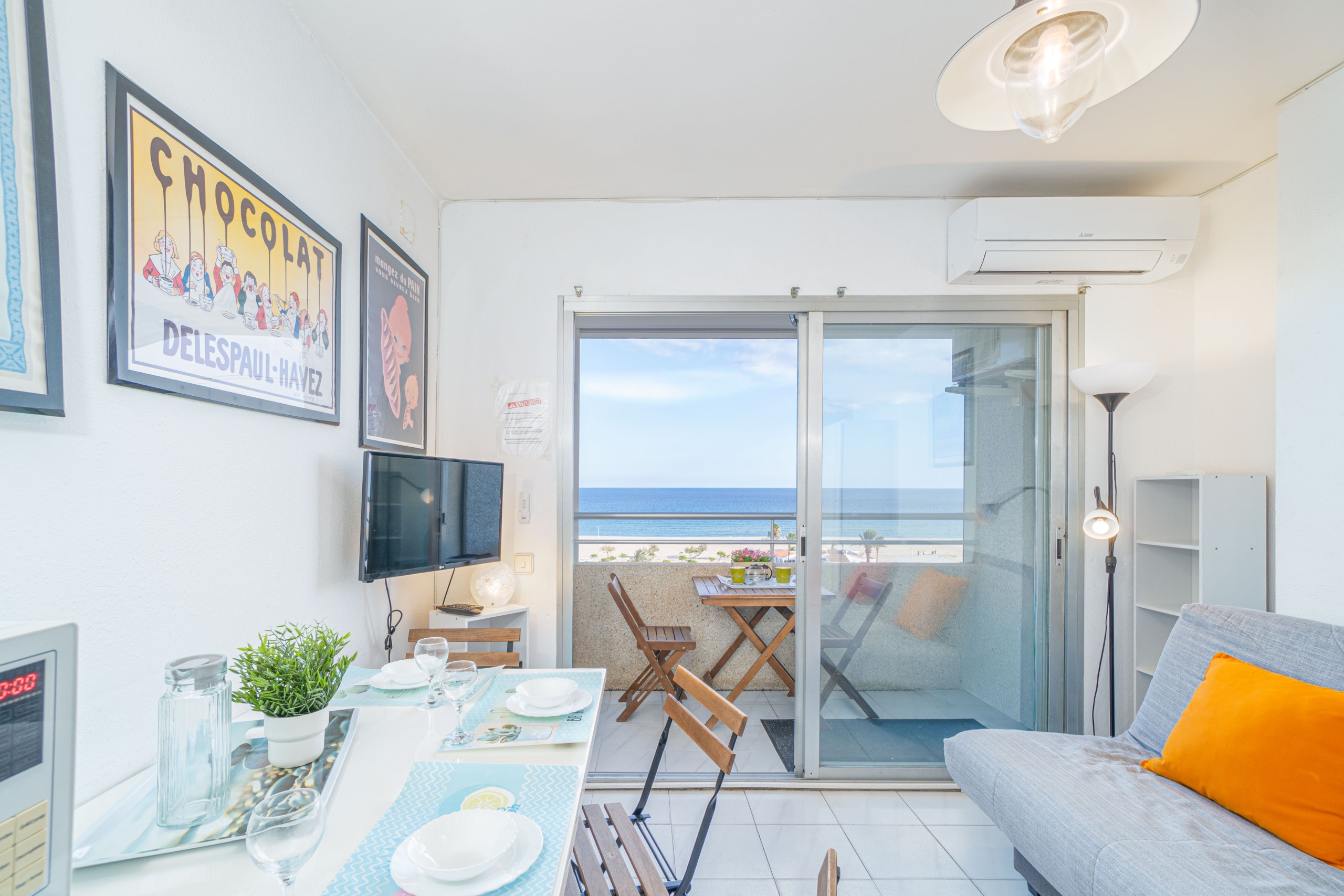 The studio in Empuriabrava has capacity for 3 people. The studio is 27 m². The property is located right next to the beach. It has views of waterfront. The property is located 50 m from the sand beach, 100 m from the river, 100 m from the from the restaurant, 150 m from the supermarket, 9 km from Aquabrava water park, 16 km from Peralada golf course, 20 km from Ave/Tgv Figueres train station, 65 km from Girona airport. The house is situated in a lively neighborhood next to the sea.The accommodation is equipped with the following items: lift, garden furniture, terrace, internet (Wi-Fi), heat pump, air conditioning in the living room, TV .In the hotplate of glass ceramics open plan kitchen, refrigerator, microwave, dishes/cutlery, kitchen utensils, coffee machine and toaster are provided.