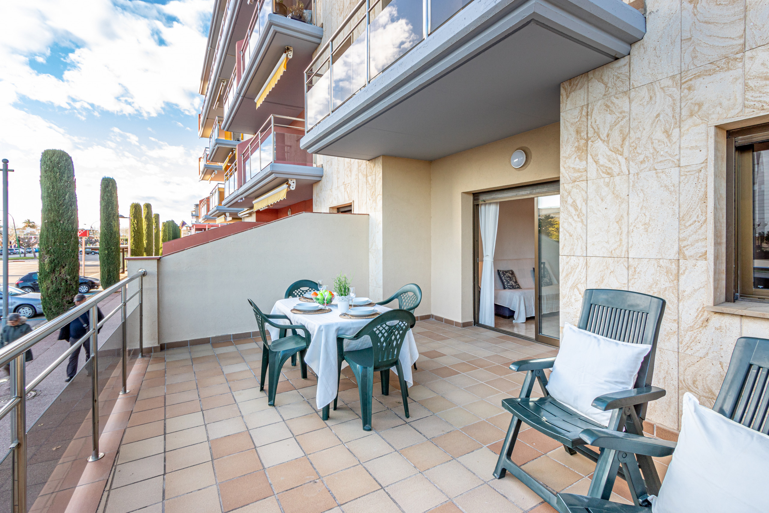 Il se situe à 50 m de la plage de sable, à 150 m du supermarché, à 16 km du golf de Peralada, à 20 km de la gare AVE/TGV de Figueres et à 65 km de l’aéroport de Gérone. Situé en bord de mer, dans une zone adaptée aux séjours familiaux.