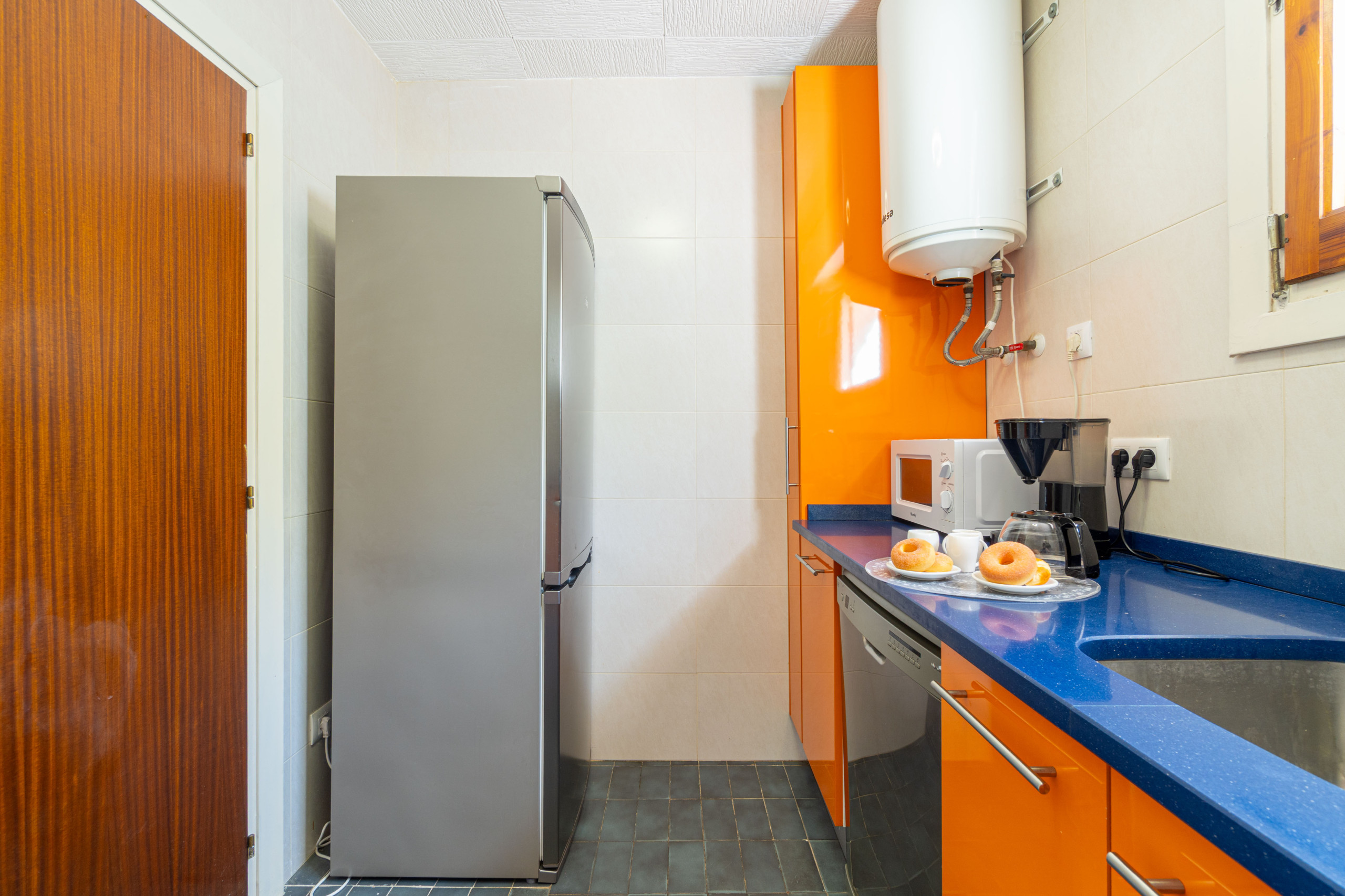 Appartement à Empuriabrava avec 3 chambres et capacité pour 5 personnes. Logement de 118 m² confortable et très lumineux. La location se trouve à 200 m du super-marché, 370 m de la plage de sable "Empuriabrava", 9 km du parc d'attractions "Aquabrava", 16 km du domaine de Golf "Peralada", 20 km de la gare "Ave/Tgv Figueres", 65 km de l'aéroport "Girona" et il est situé dans une zone idéale pour familles zone et proche du commerce et des restaurants.Elle dispose de mobilier de jardin, terrasse, lave-linge, fer à repasser, accès internet (wifi), 3 ventilateurs, TV.La cuisine indépendante, à vitrocéramique, est équipée avec réfrigérateur, lave-vaisselle, vaisselle/couverts, ustensiles/cuisine, cafetière et grille pain.