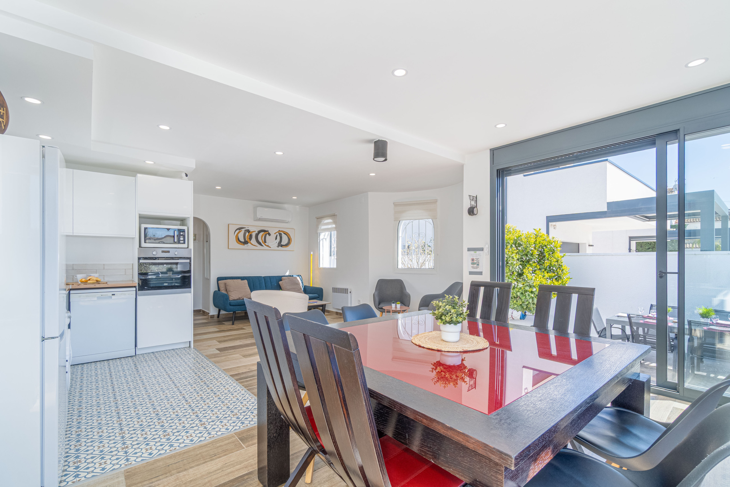 La villa à Empuriabrava dispose de 4 chambres et peut accueillir 8 personnes, offrant un espace confortable, très lumineux et fonctionnel de 105 m² avec vue sur la piscine. Idéal pour des vacances en famille ou entre amis sur la Costa Brava.