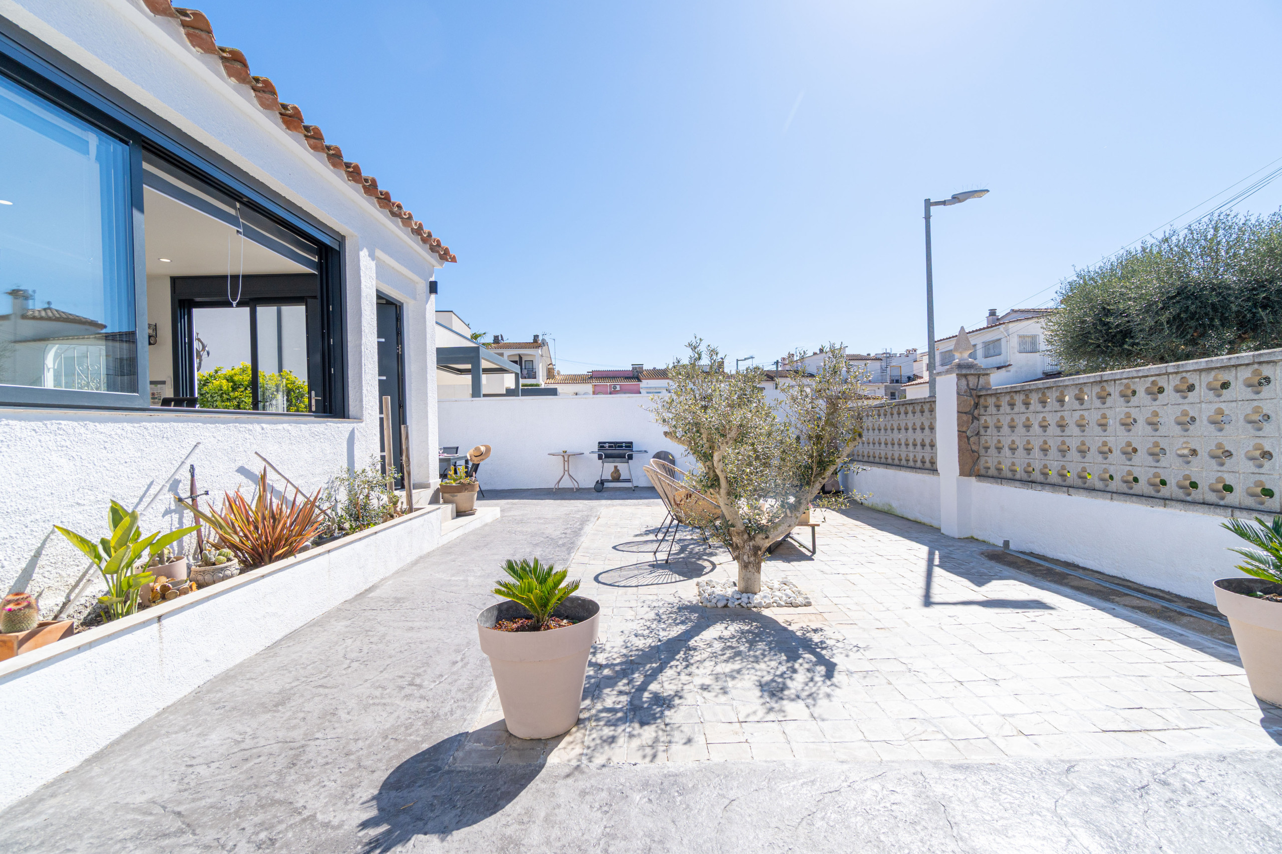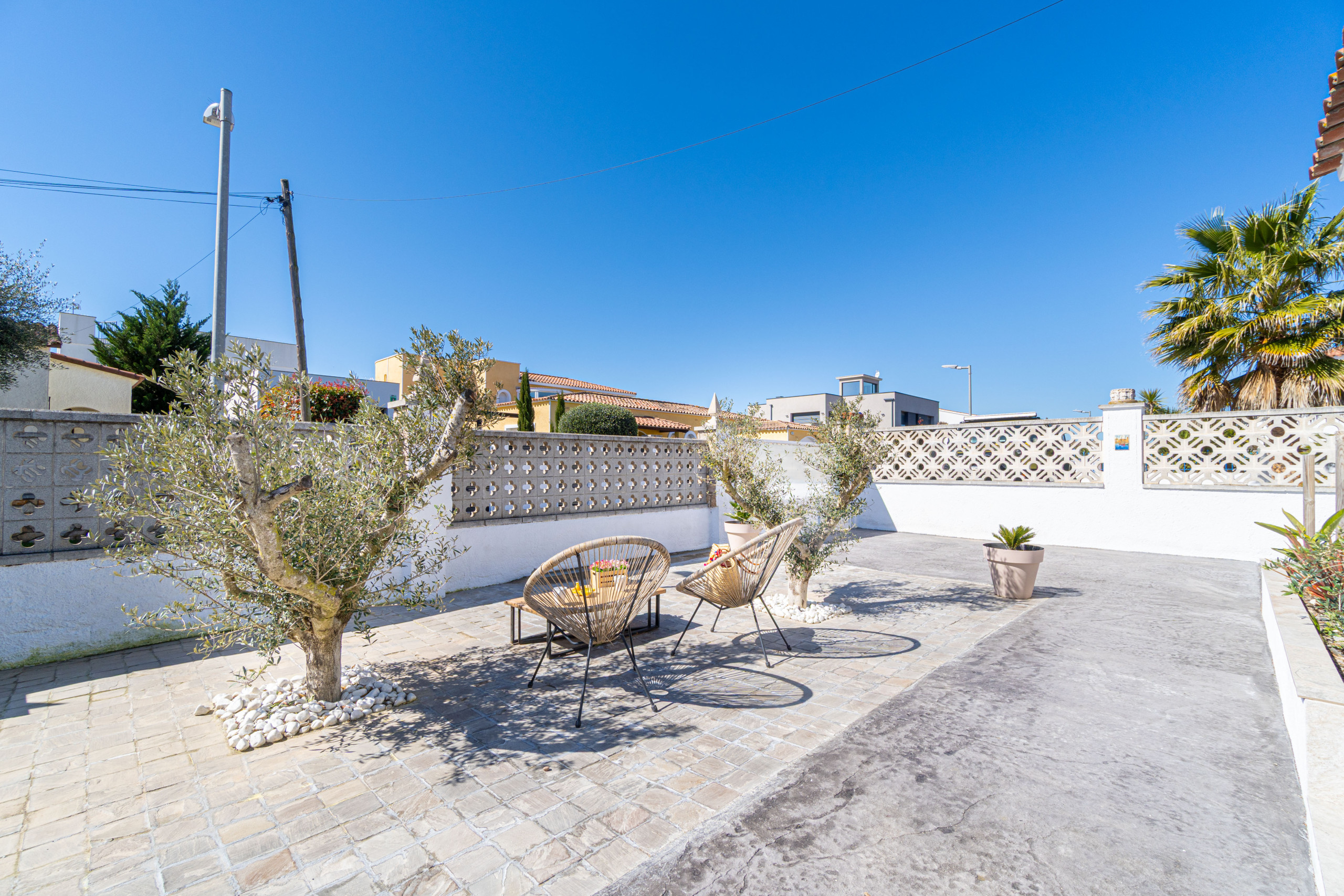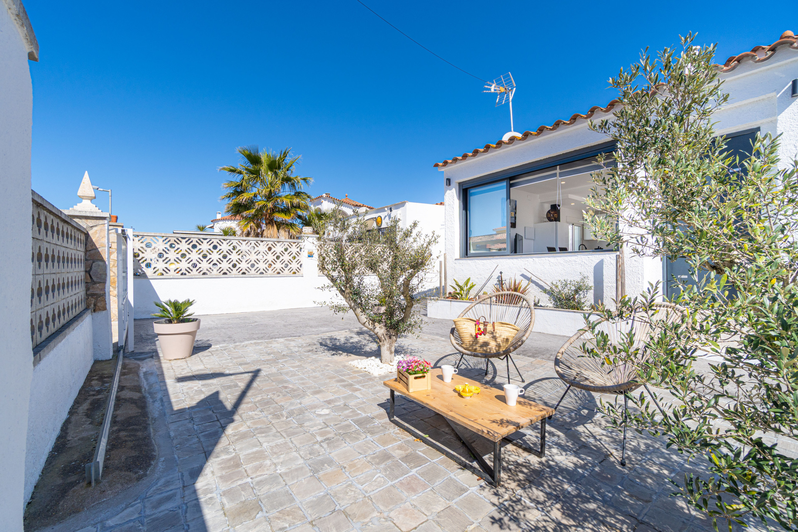 De woning ligt op 650 m van de supermarkt, 850 m van het zandstrand, 16 km van de golfbaan “Peralada”, 20 km van het AVE/TGV-station in Figueres en 65 km van de luchthaven Girona. Ze bevindt zich in een rustige wijk die ideaal is voor families, binnen een residentiële urbanisatie.