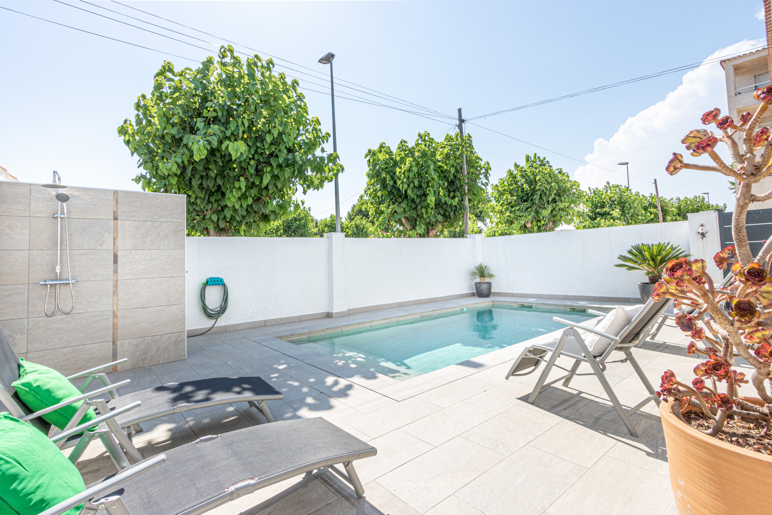 К услугам гостей садовая мебель, терраса, стиральная машина, интернет (wifi), отопление с тепловым насосом, кондиционер только в гостиной, частный бассейн и спутниковое телевидение (языки: испанский, немецкий, французский).