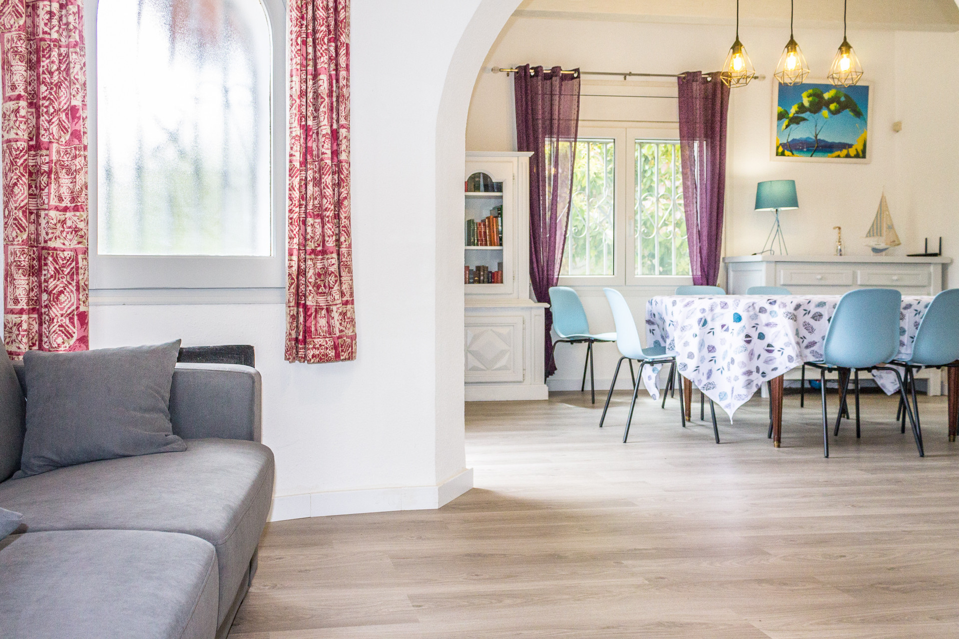 Вилла в Эмпуриабраве располагает 3 спальнями и рассчитана на размещение до 7 человек. Две спальни находятся в основной части дома, а третья — это отдельная студия с доступом из сада или гаража.